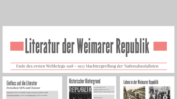 Literatur der weimarer republik historischer hintergrund. Dem Hitler Putsch oder dem raschen Anstieg der Inflation. Januar 1919 ging Friedrich Ebert als erster Praesident der Weimarer Republik hervor. Von der Jahrhundertwende bis 1933.